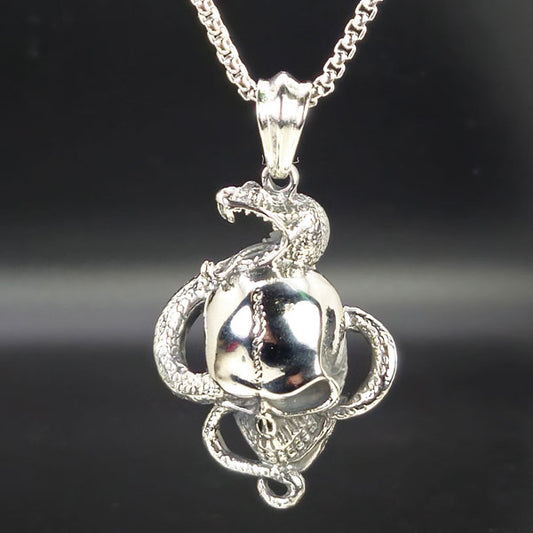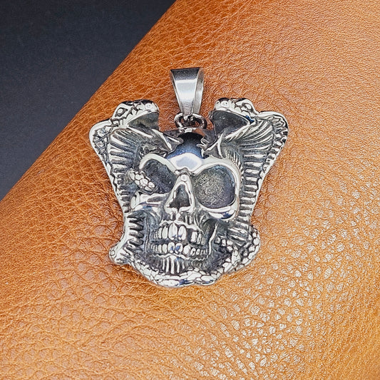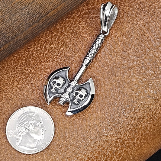 Skull Inscribed Double Headed Axe Stainless Steel Necklace