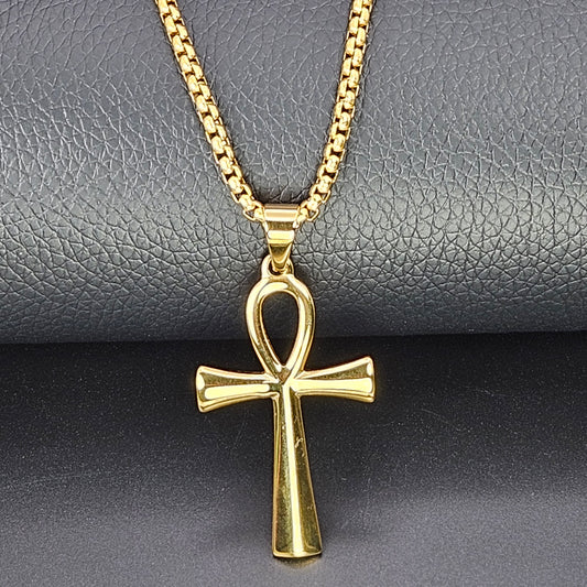 Shiny Gold Plated Ankh Stainless Steel Necklace