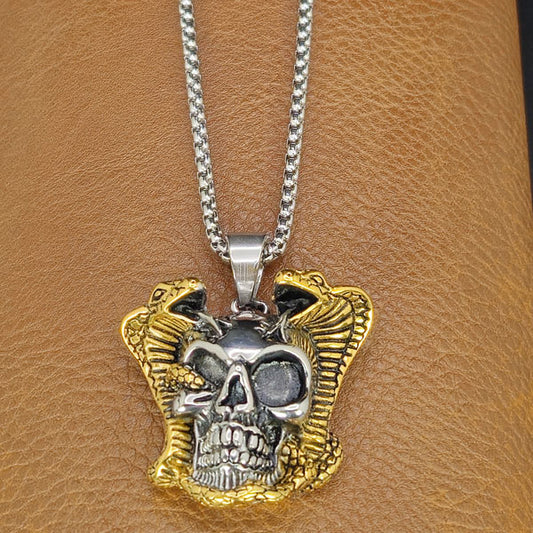 Skull with Wrenches on an Upgraded 11mm 24" Figaro Chain