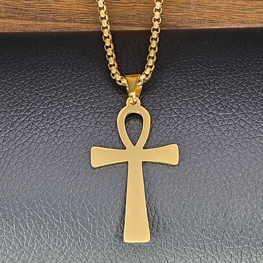 Flat Gold Plated Ankh Stainless Steel Necklace