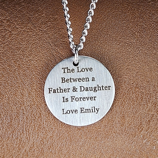 Engraved Stainless Steel Grooved Round Necklace or Key Chain
