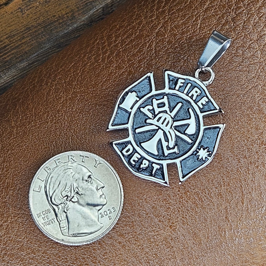 Fire Department Stainless Steel Pendant Necklace or Key Chain