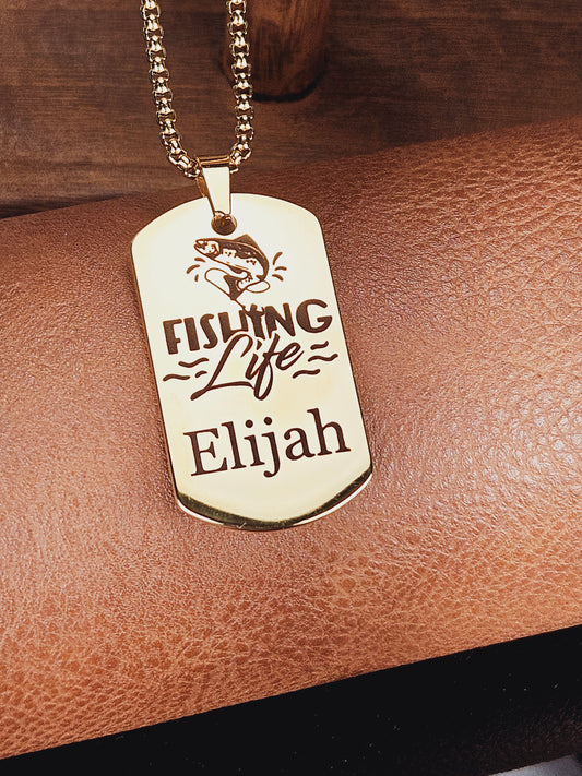 Fishing Life Small Dog Tag Stainless Steel Necklace