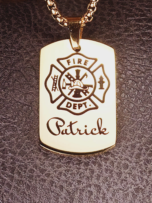 Fire Department Dog Tag Stainless Steel Pendant Necklace