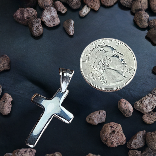 Engraved Small Tapered Cross Stainless Steel Necklace