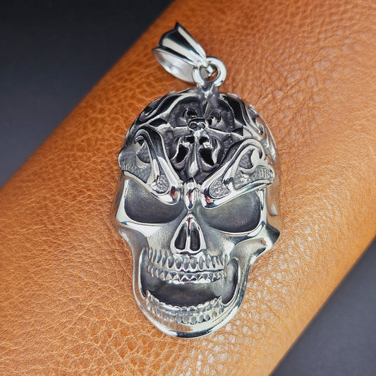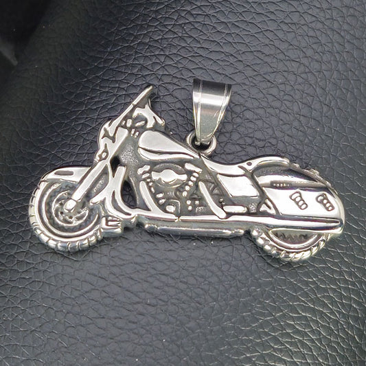 Motorcycle Engine with a Skull Stainless Steel Necklace