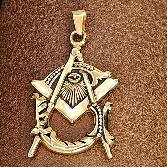 Masonic Eye of Providence Square & Compass Gold Plated Stainless Steel Necklace