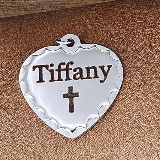 Large Personalized Heart with a Cross Necklace or Key Chain