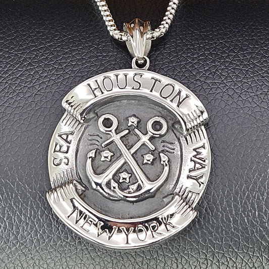 Houston New York Seaway Anchors Stainless Steel Necklace