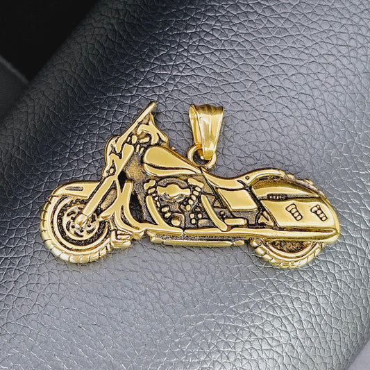 Motorcycle Engine with a Skull Stainless Steel Necklace