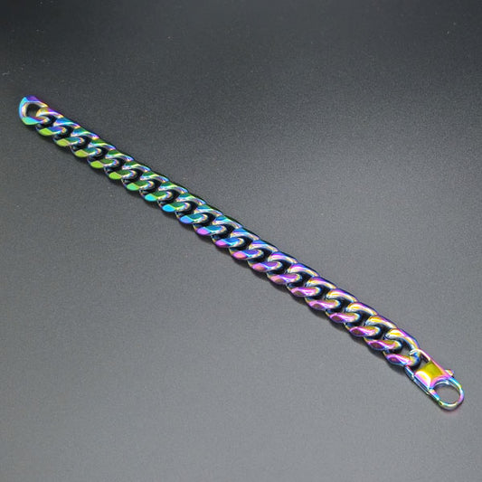 Rainbow Stainless Steel Curb Bracelet 9" 12mm