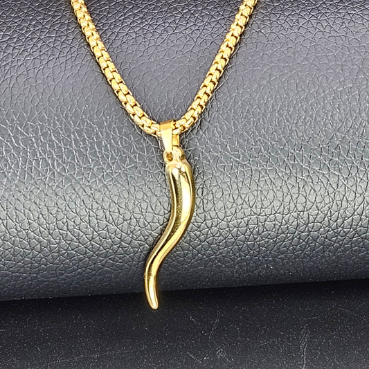 Gold Plated Italian Horn Stainless Steel Necklace