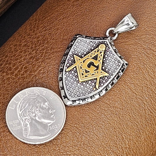 Freemason Square and Compass on a Sheild Stainless Steel Necklace